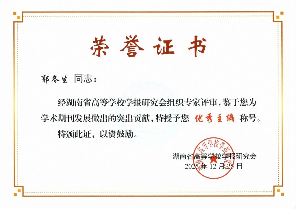 1月8日至11日,湖南省高等学校学报研究会2025年年会暨培训会议举行。中国高校科技期刊研究会、湖南省高等学报研究会的领导出席会议并致辞。来自全省30余所高校的150余名期刊出版行业代表参会。我校期刊社被评为湖南省高等学报研究会2025年突出贡献单位;郭冬生被评为湖南省高等学报研究会2025年优秀主编;胡丽丽论文获湖南省高等学报研究会2025年年会征文比赛二等奖。来自中南大学、湖南大学、中南林业科技大学、湖南文理学院和湖南中医药大学的5名优秀主编代表作了经验交流。