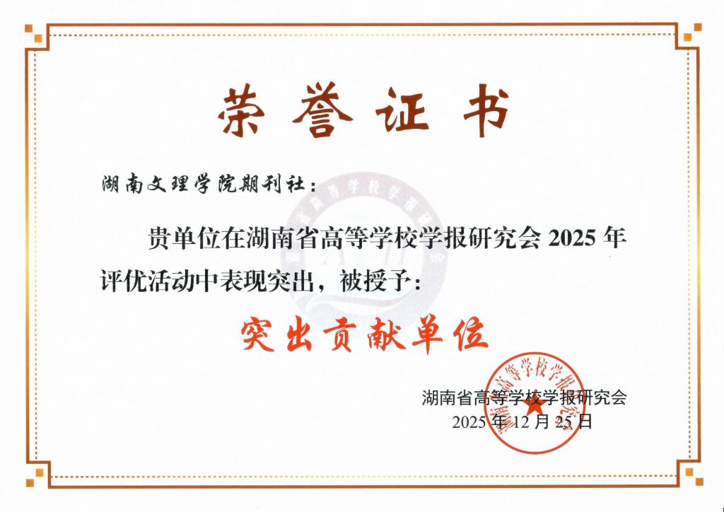 据中国知网影响因子年报,《湖南文理学院学报(自然科学版)》2025版复合影响因子0.806,综合影响因子0.582,期刊影响力指数(CI)42.762,CI值在自然科学与工程技术综合类刊物中居湖南省内刊物第2名,被美国《化学文摘(CAS)》等检索收录。《武陵学刊》2025版复合影响因子0.575,综合影响因子0.354,期刊影响力指数(CI值)10.6,其中复合影响因子是本刊创刊以来最高值。